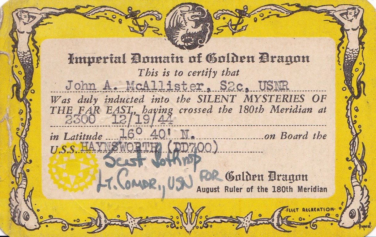 | Photos provided by: Marty Irons, Son-In-Law of John McAllister RM3c 44-46 | ||