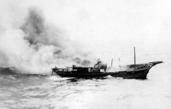| US Destroyer Attacking and Destroying Japanese Picket Ship ~ 02-16-1945, In the seas off Japan | |