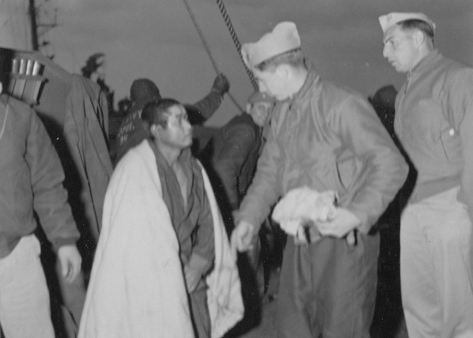 The USS Haynsworth and other US Destroyers Attack and Sink Japanese Picket Ships. Survivors are rescued, taken prisoner, and then transferred to the USS Essex CV9 and USS Bunker Hill CV17. |